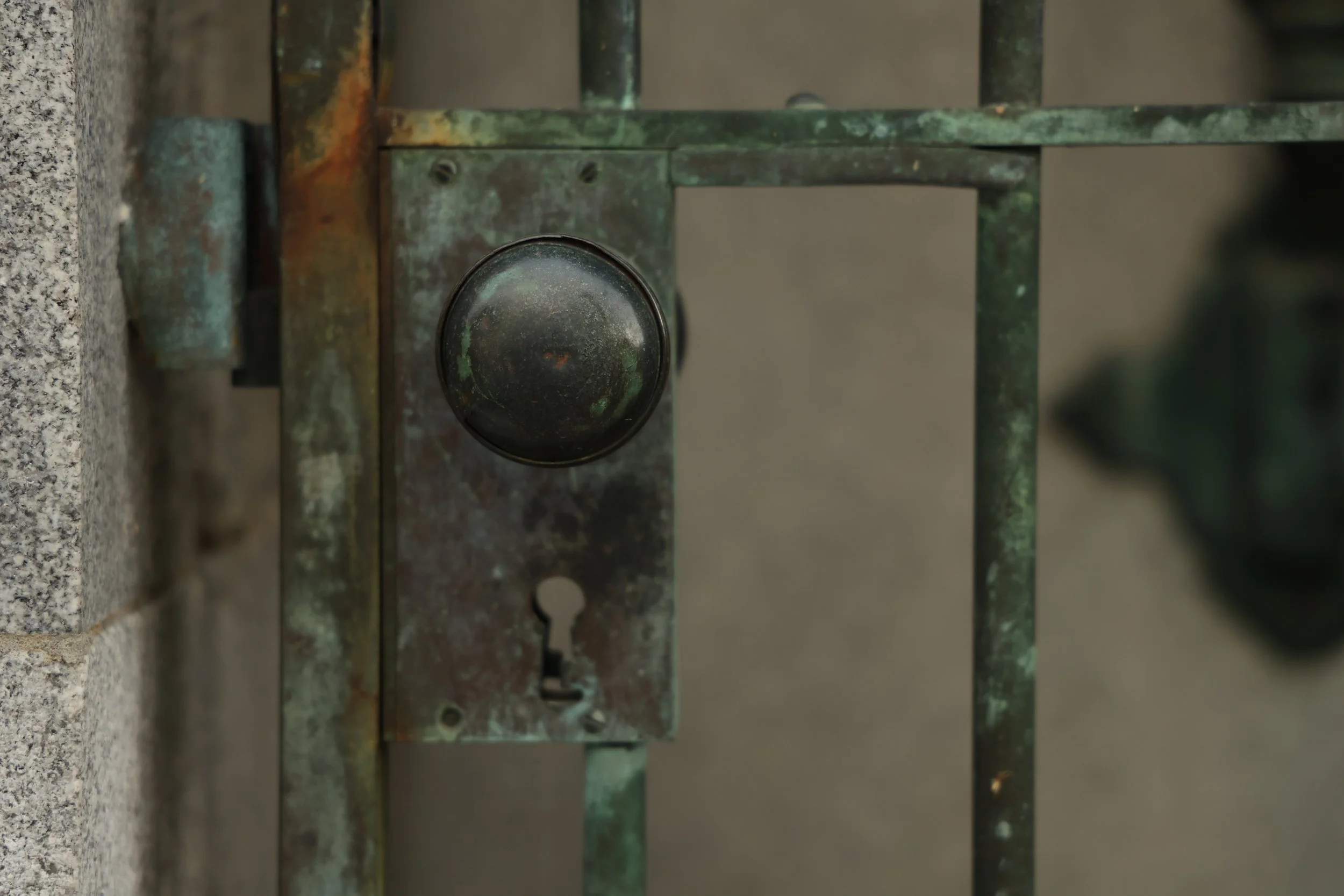 Looking into the Richardson mausoleum. There is not door or glass behind the gate.