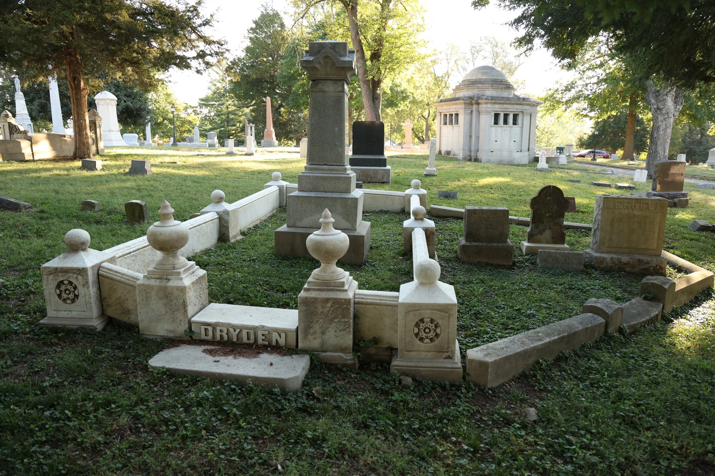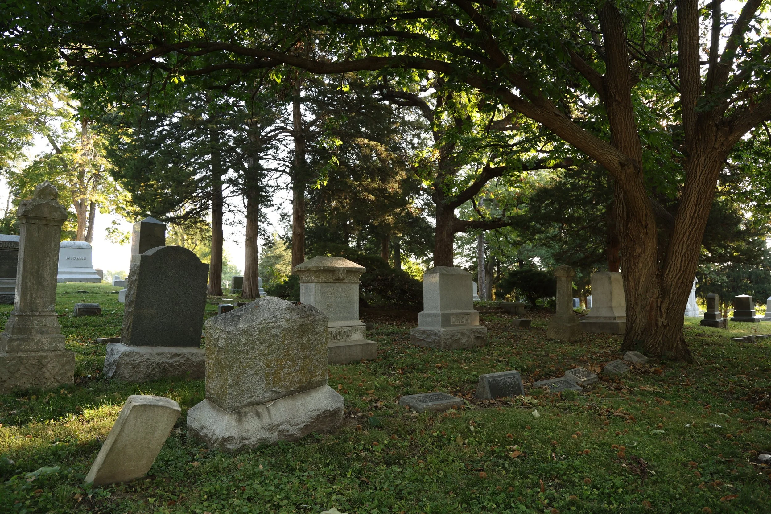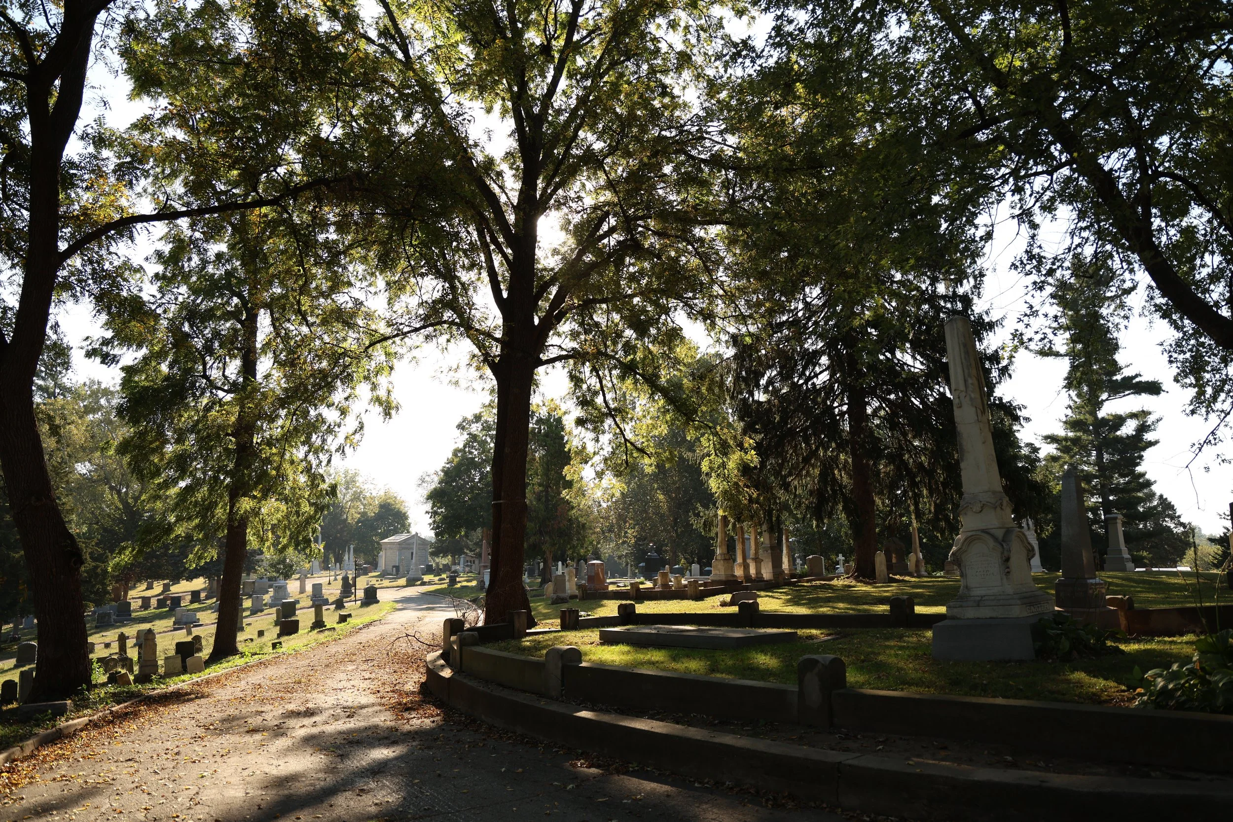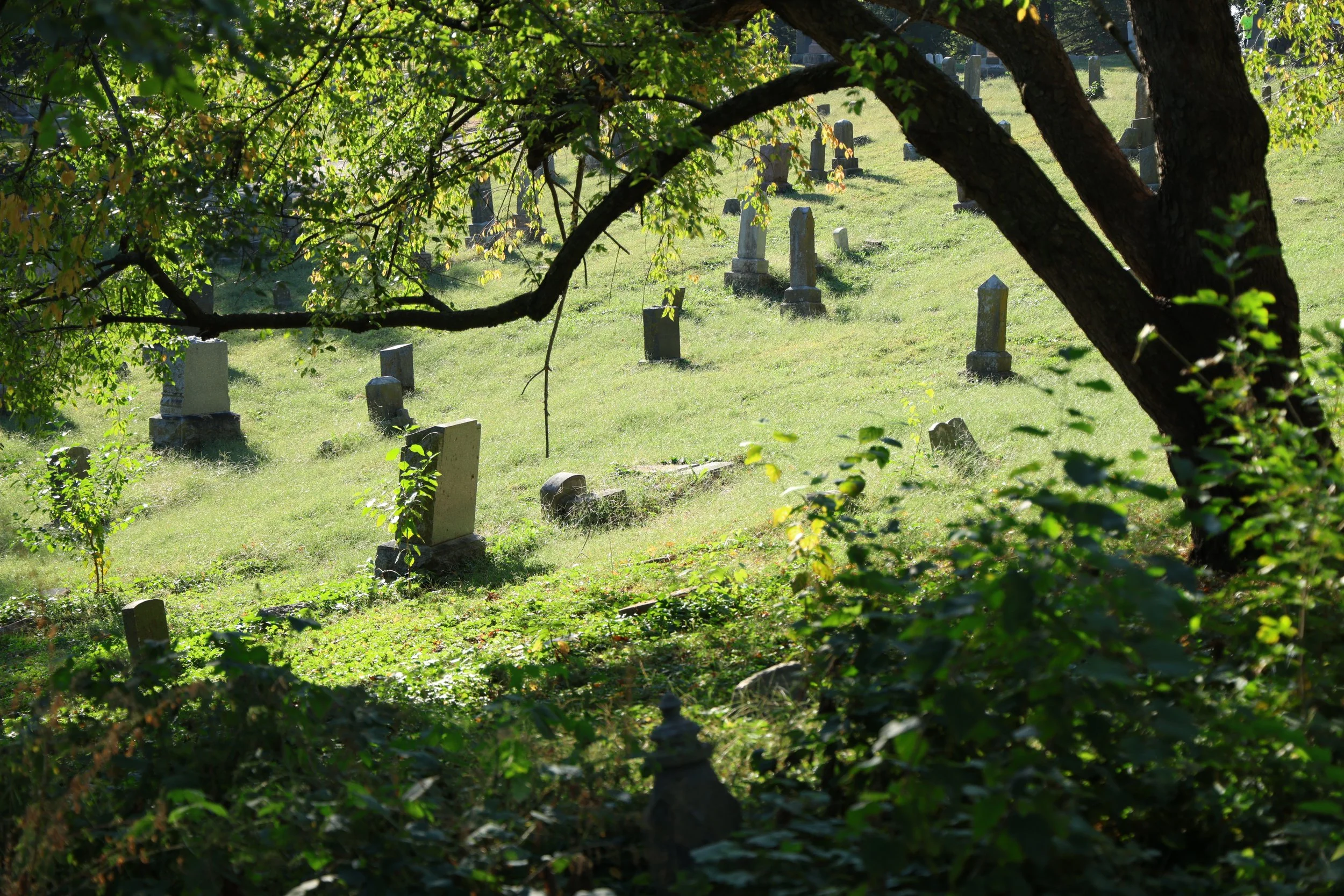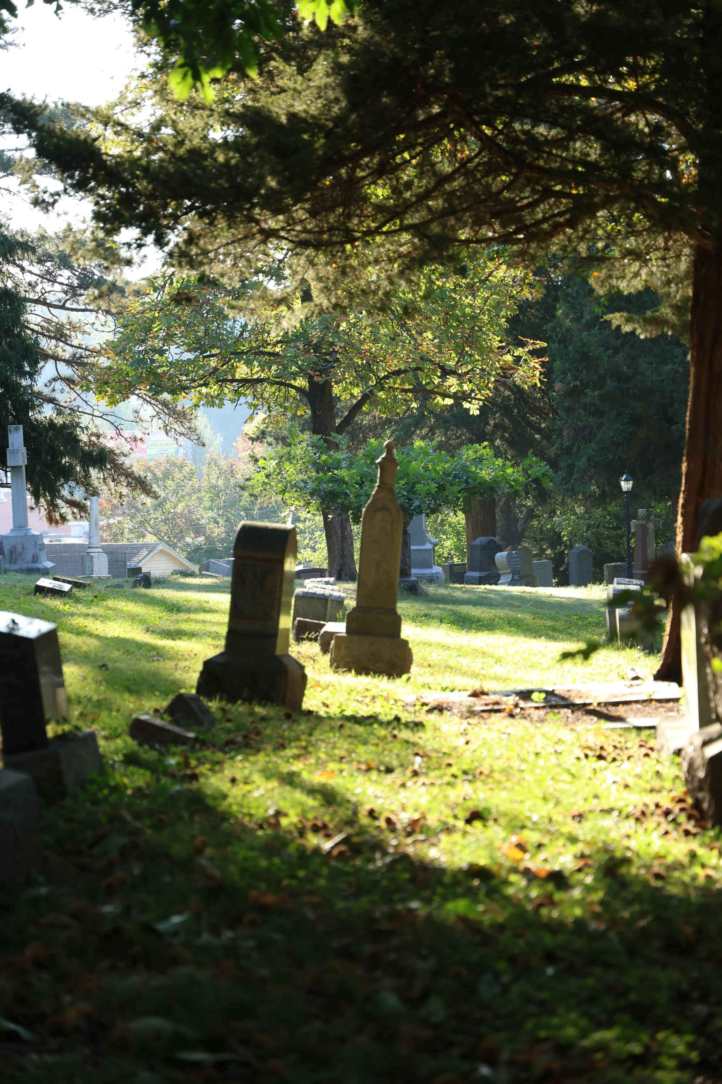This overlooks the southwest section of Ashland Cemetery. This part was once an entirely different graveyard, Oakland Cemetery, before the two merged in 1913.
