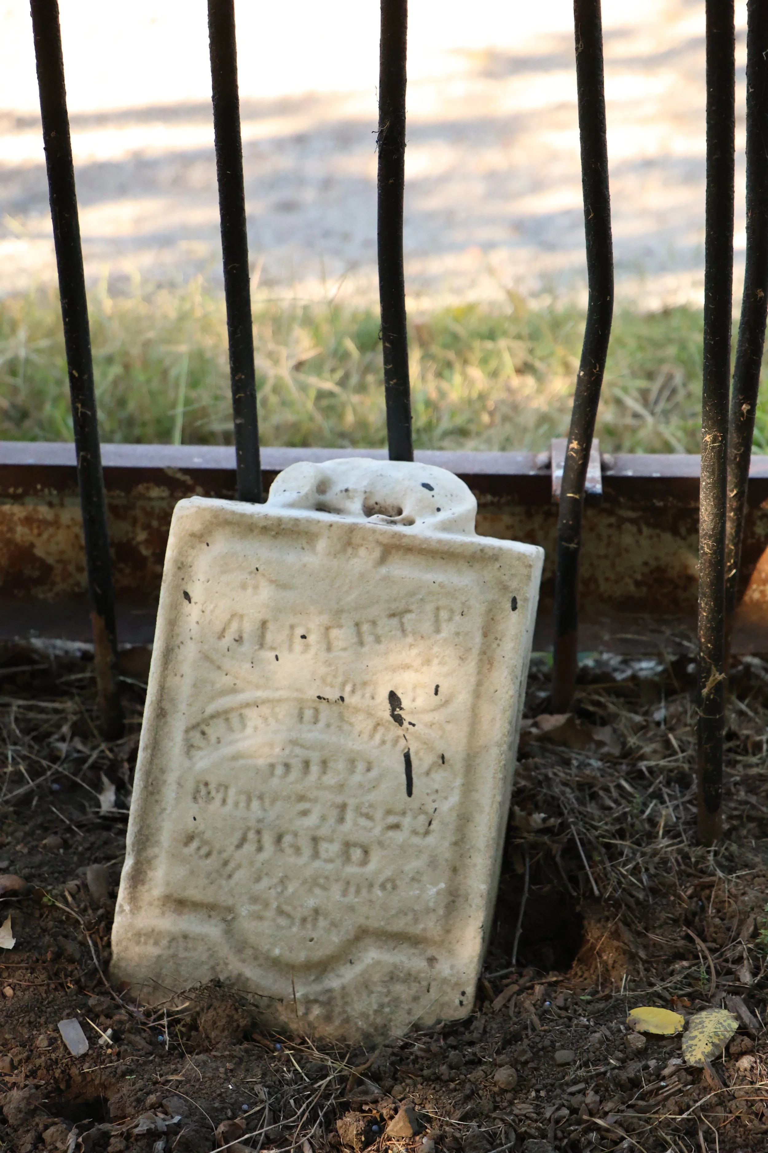 What appears to be evidence of an attempted headstone robbery belonging to 10-year-old Albert P. Rose.