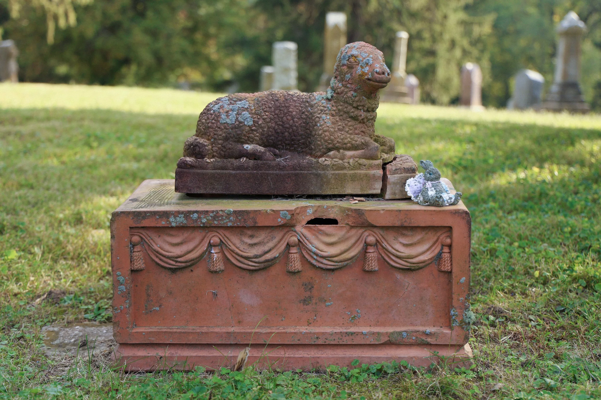 Two lambs on a headstone. With the inscription lost to erosion and decay, I can only wonder if the grave belongs to two babies or infants— perhaps twins.