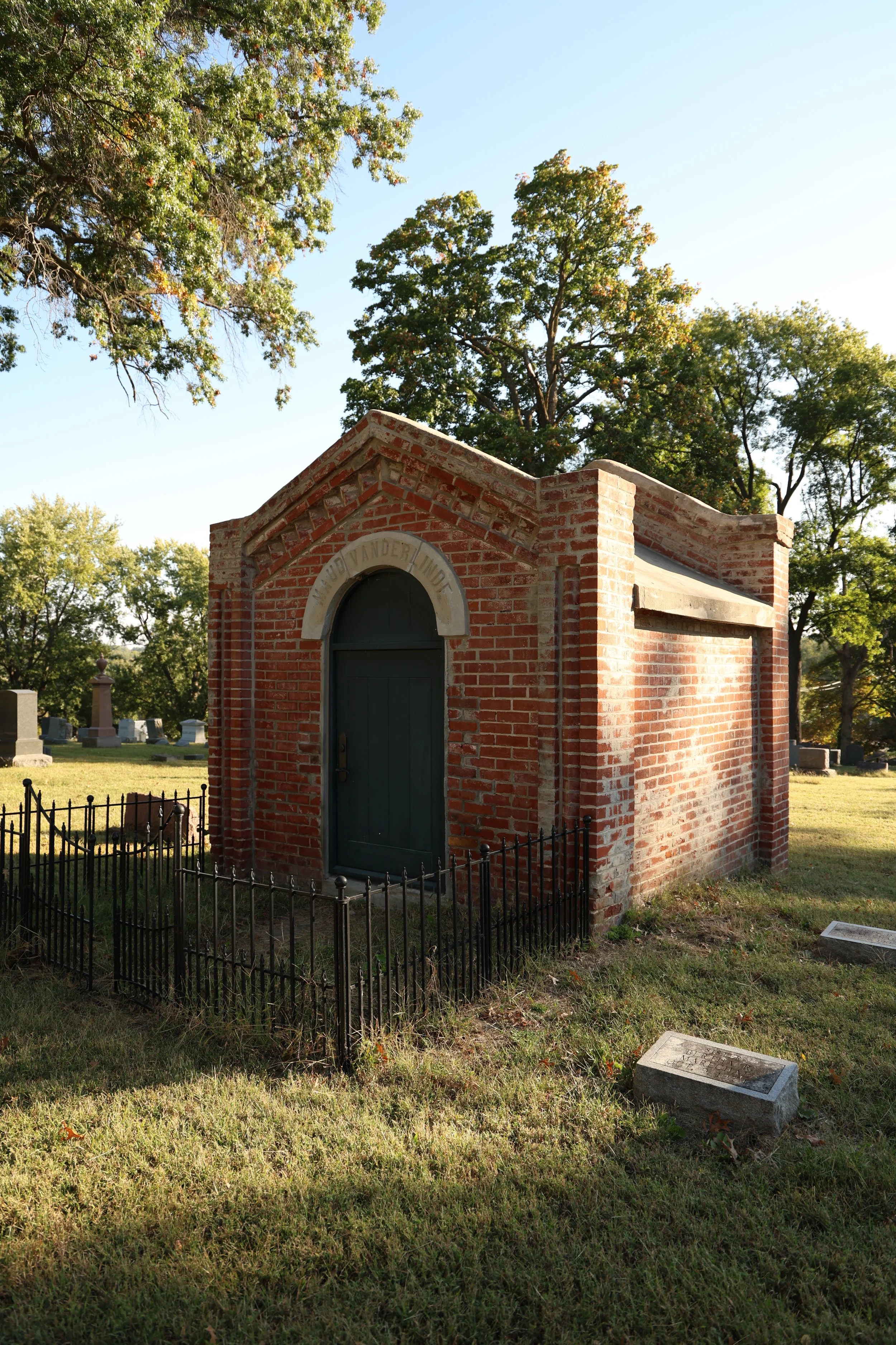 Probably the most infamous mausoleum within the gates of Mount Mora. Not only does its appearance seem jarring compared to the neighboring mausoleums, but its legend is just as peculiar. As the story goes, Maude Vanderline was approximately 22 or 23 years old when she and her husband passed through St. Joseph while heading out west. It is said Maude died during childbirth. Her husband, distraught with grief, contacted a nearby Native American medicine man to put a spell on the body of his wife. Maude is said to have been placed in a coffin laying on two sawhorses, her body exposed to the elements. Over a century later, with the mausoleum crumbling with age, those who dared to peek in have seen the body of Maude seemingly asleep as if she'd died merely minutes before, incorruptible. In recent years, the former entrance to the mausoleum has been bricked shut with a lot of restoration work done on the exterior.