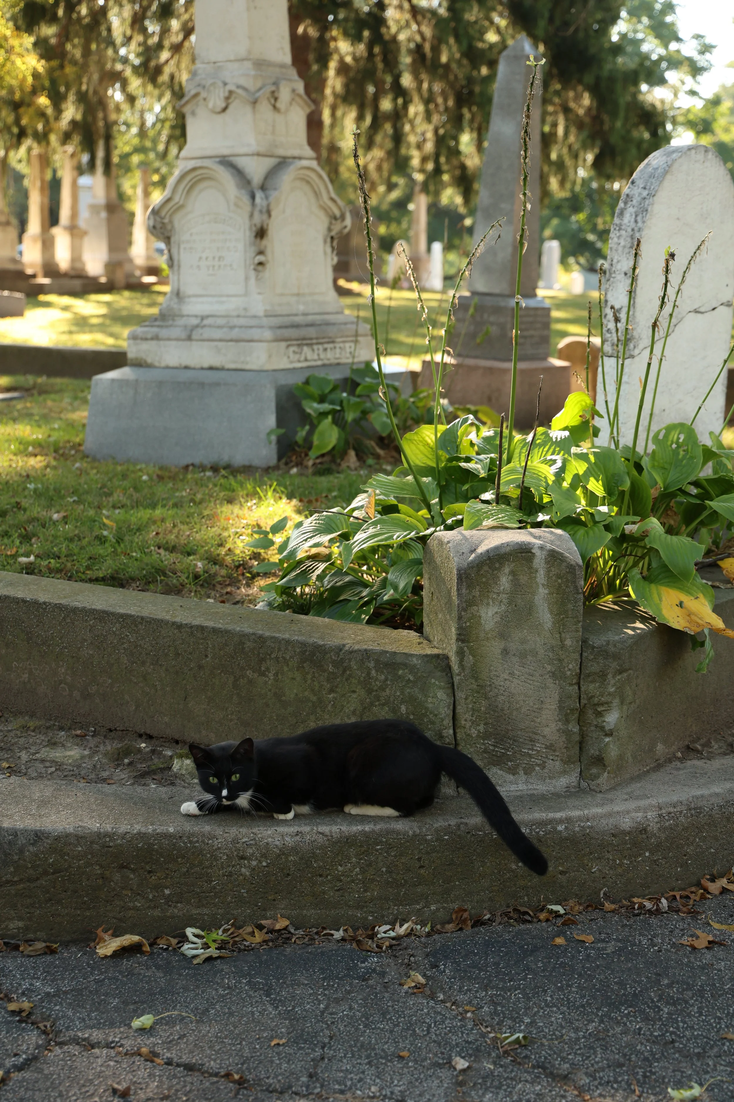 Graveyard kitty who nearly scared me to death while emerging from behind a headstone.