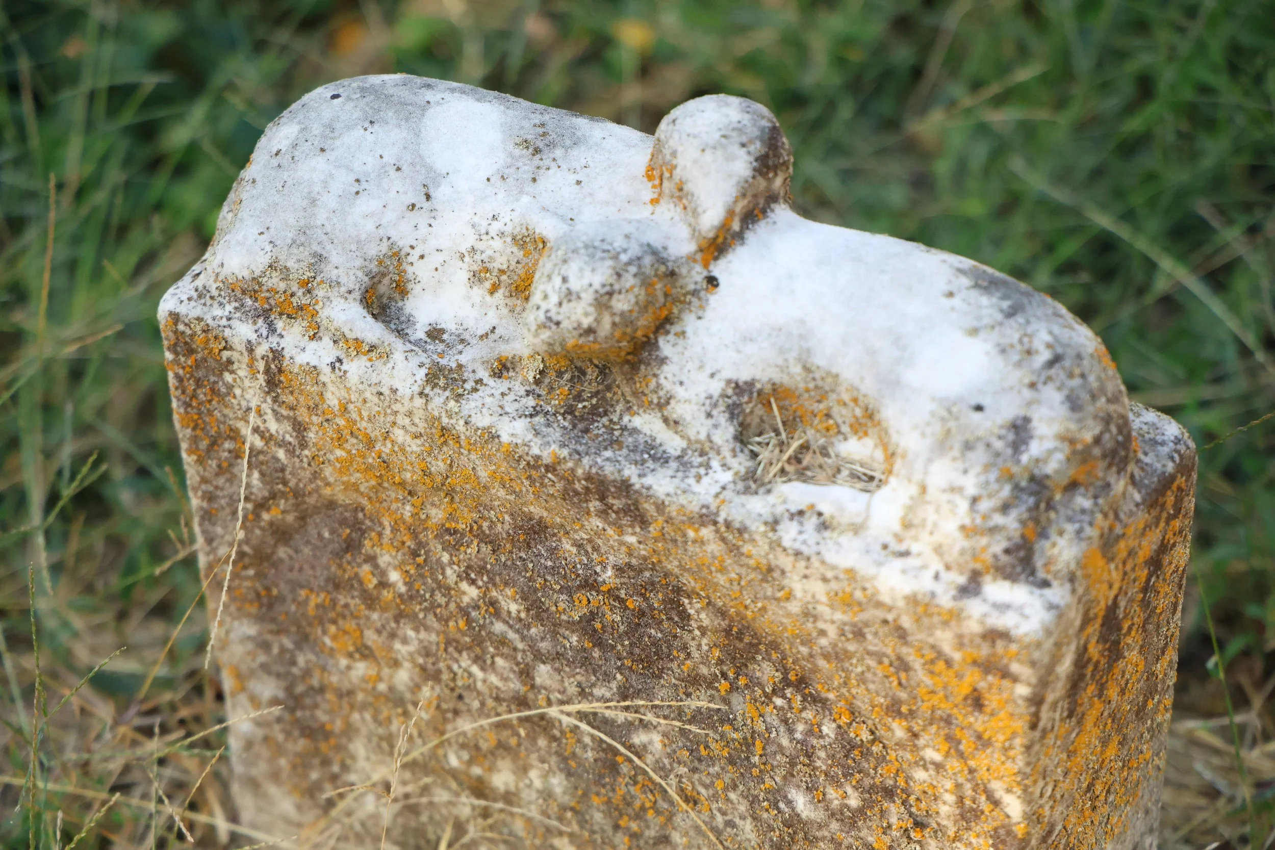 Headstone of Rudolf Florin. Erosion to this headstone has caused it to break apart and become nearly illegible.