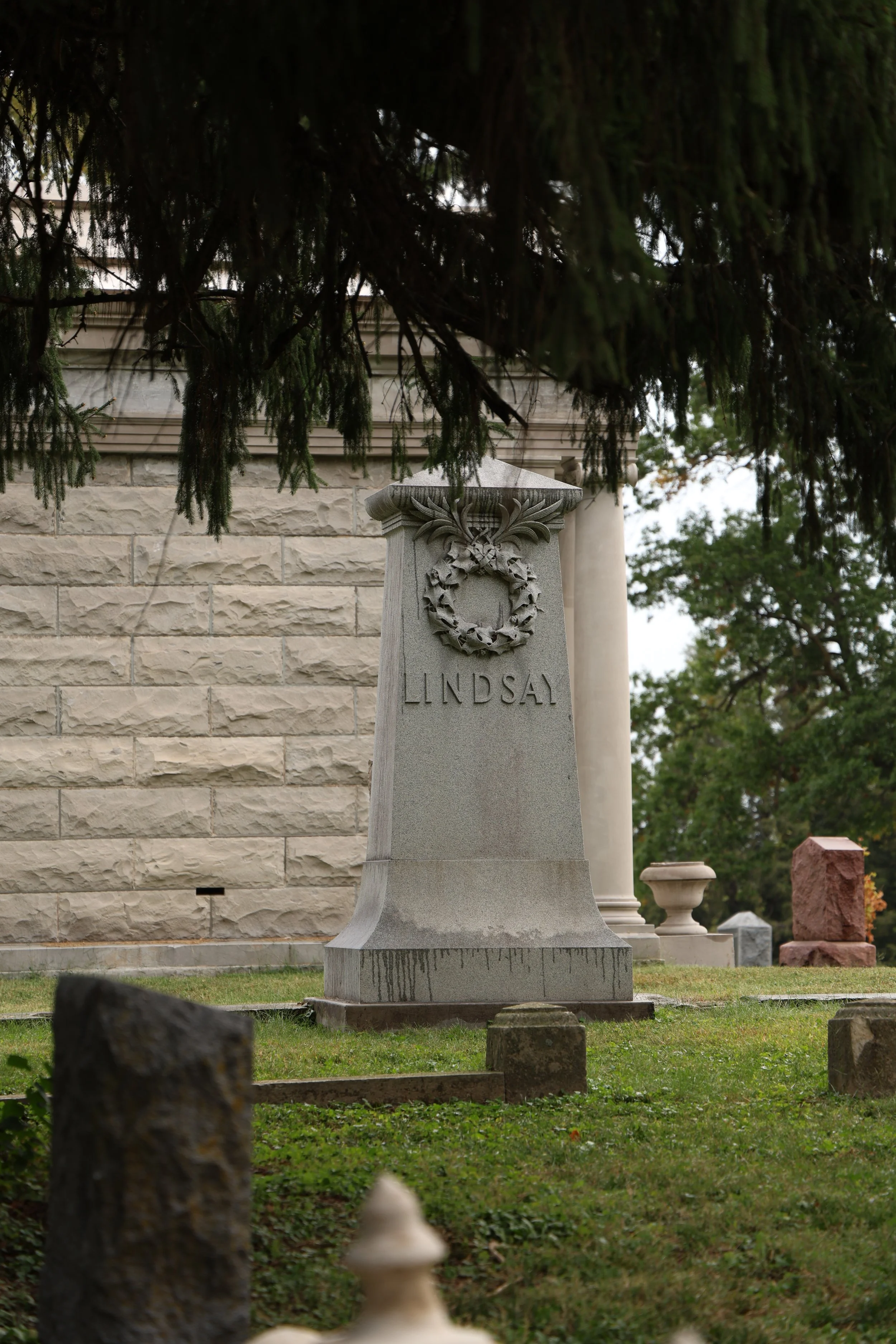 "Ernest Lindsay, Sr., was especially prominent in the financial and business life of the city. He was president of the State National Bank, and ... was largely instrumental in establishing the present stock yards and packing plants in St. Joseph. At the time of his death, in 1902, he was the oldest banker in Missouri." He was 56.
